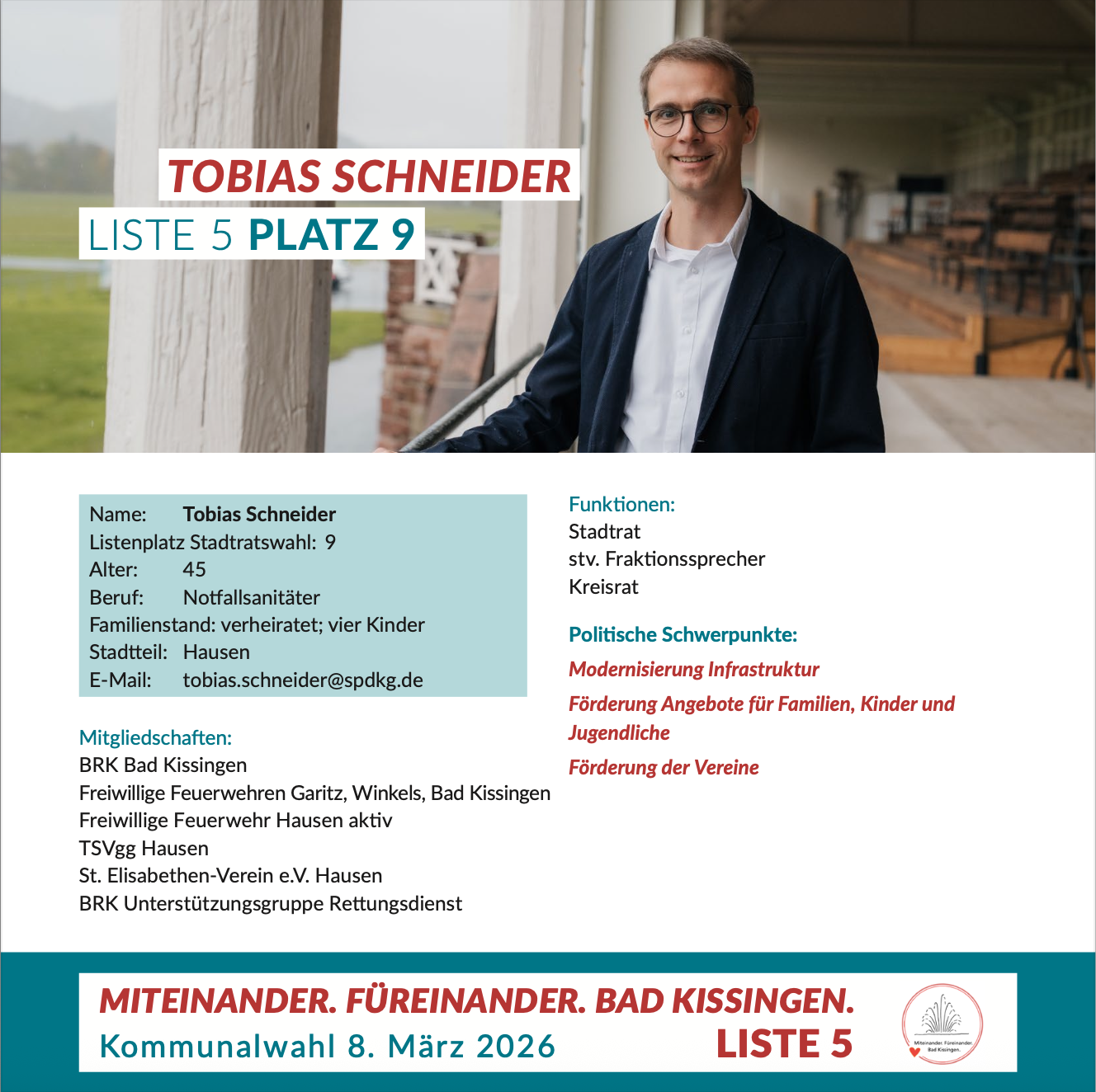 Sie sind hier: Start › Wahlen › Stadtratswahl › Miteinander. Füreinander. Bad Kissingen. › Tobias Schneider