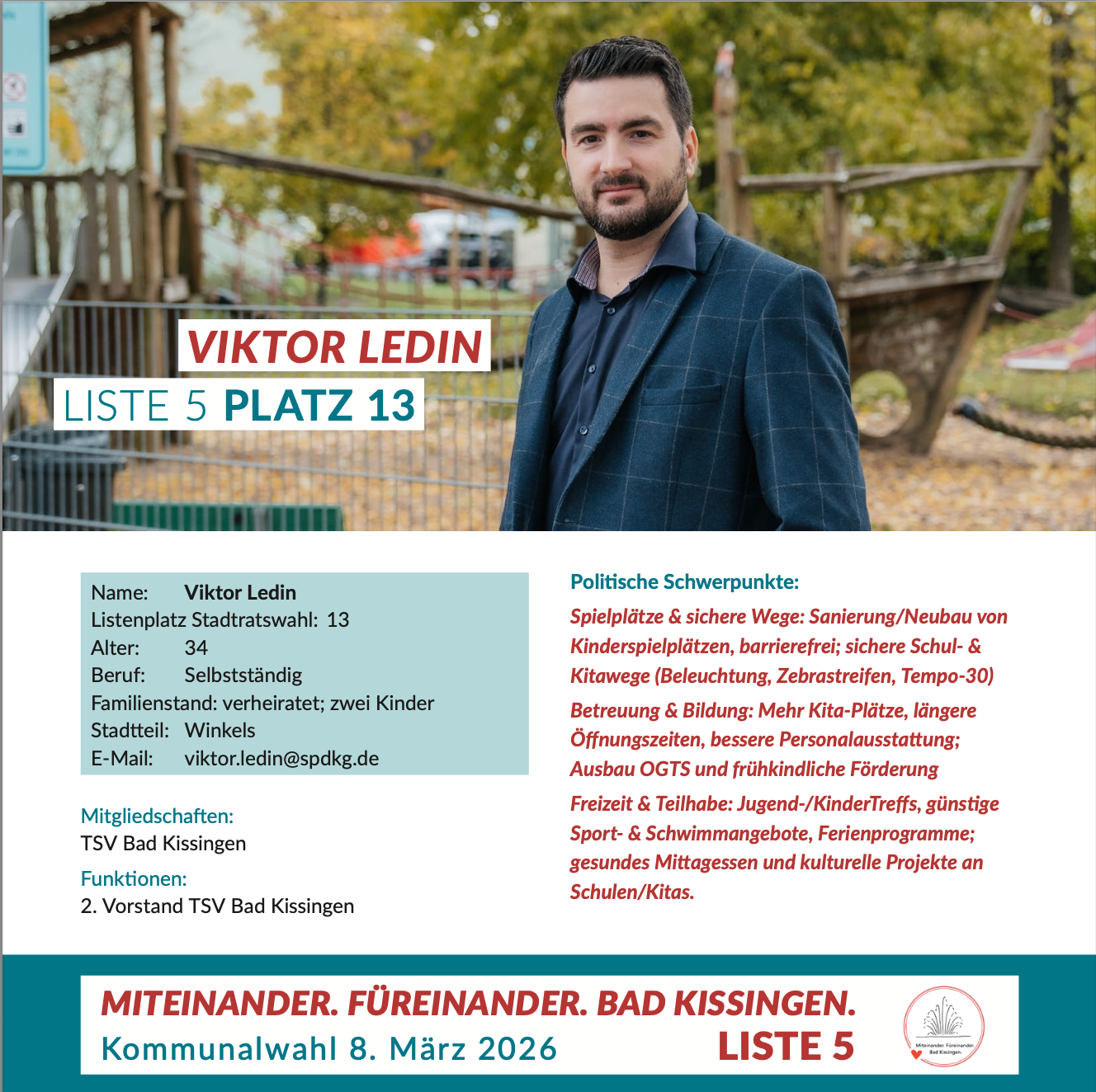 Sie sind hier: Start › Wahlen › Stadtratswahl › Miteinander. Füreinander. Bad Kissingen. › Viktor Ledin