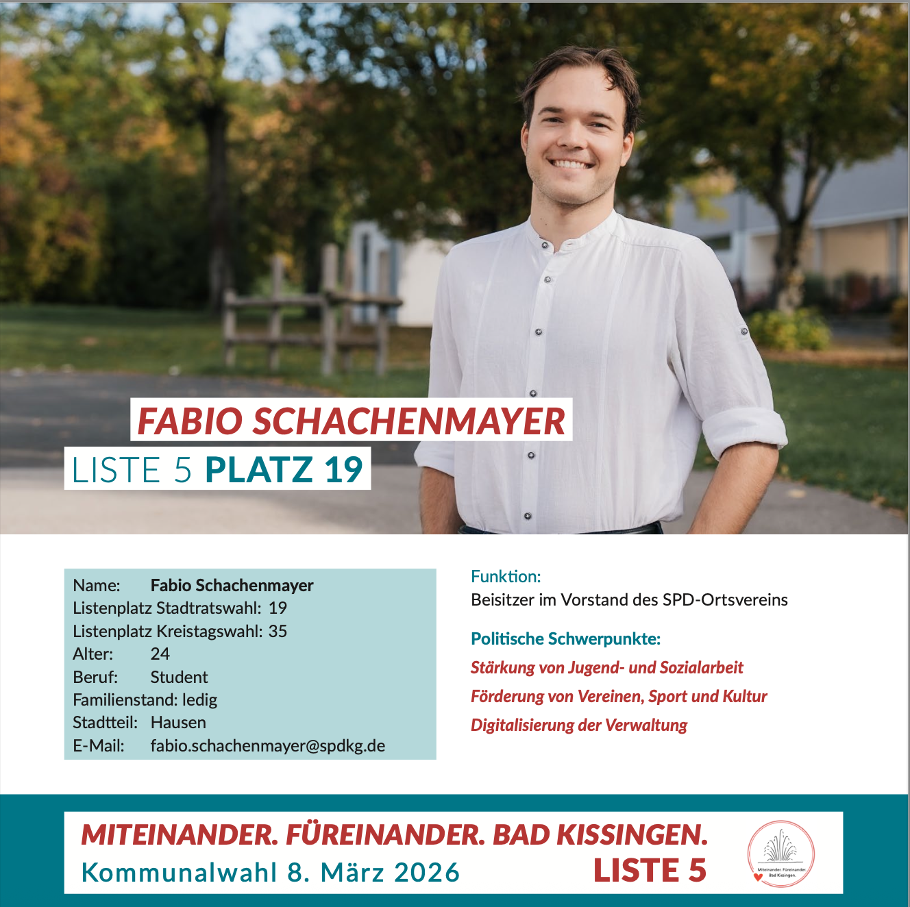 Sie sind hier: Start › Wahlen › Stadtratswahl › Miteinander. Füreinander. Bad Kissingen. › Fabio Schachenmayer