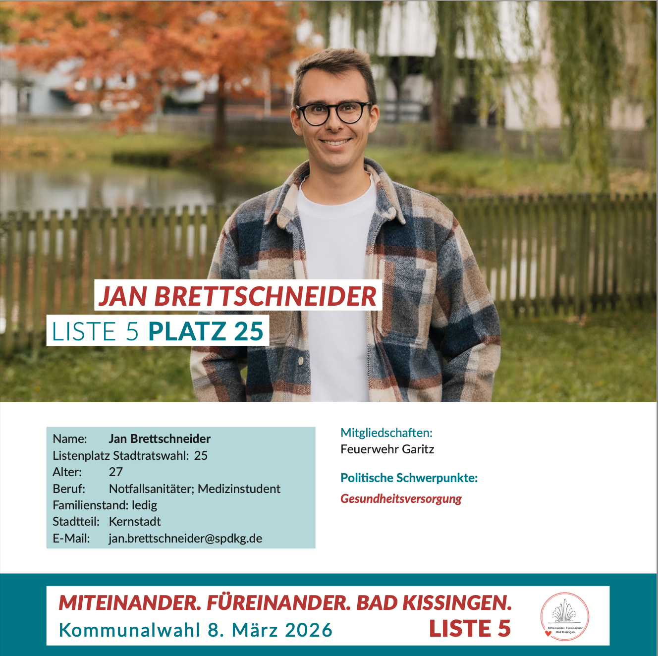 Sie sind hier: Start › Wahlen › Stadtratswahl › Miteinander. Füreinander. Bad Kissingen. › Jan Brettschneider
