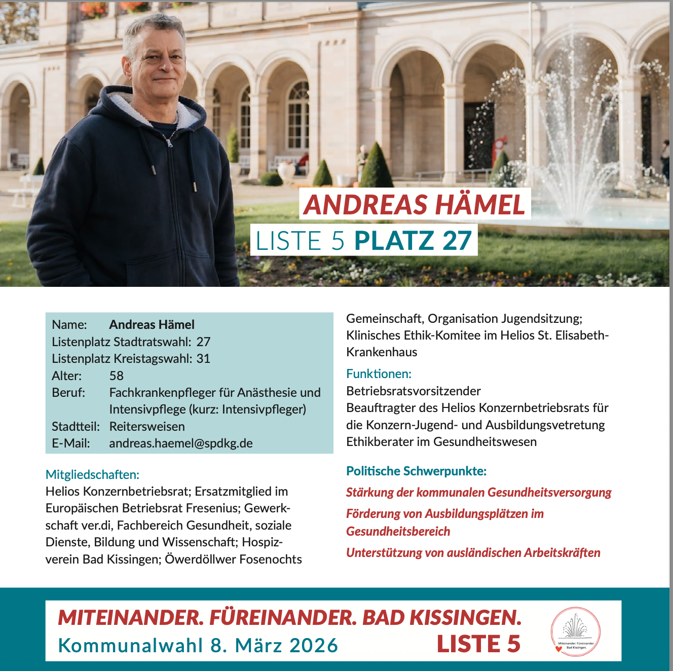 Sie sind hier: Start › Wahlen › Stadtratswahl › Miteinander. Füreinander. Bad Kissingen. › Andreas Hämel