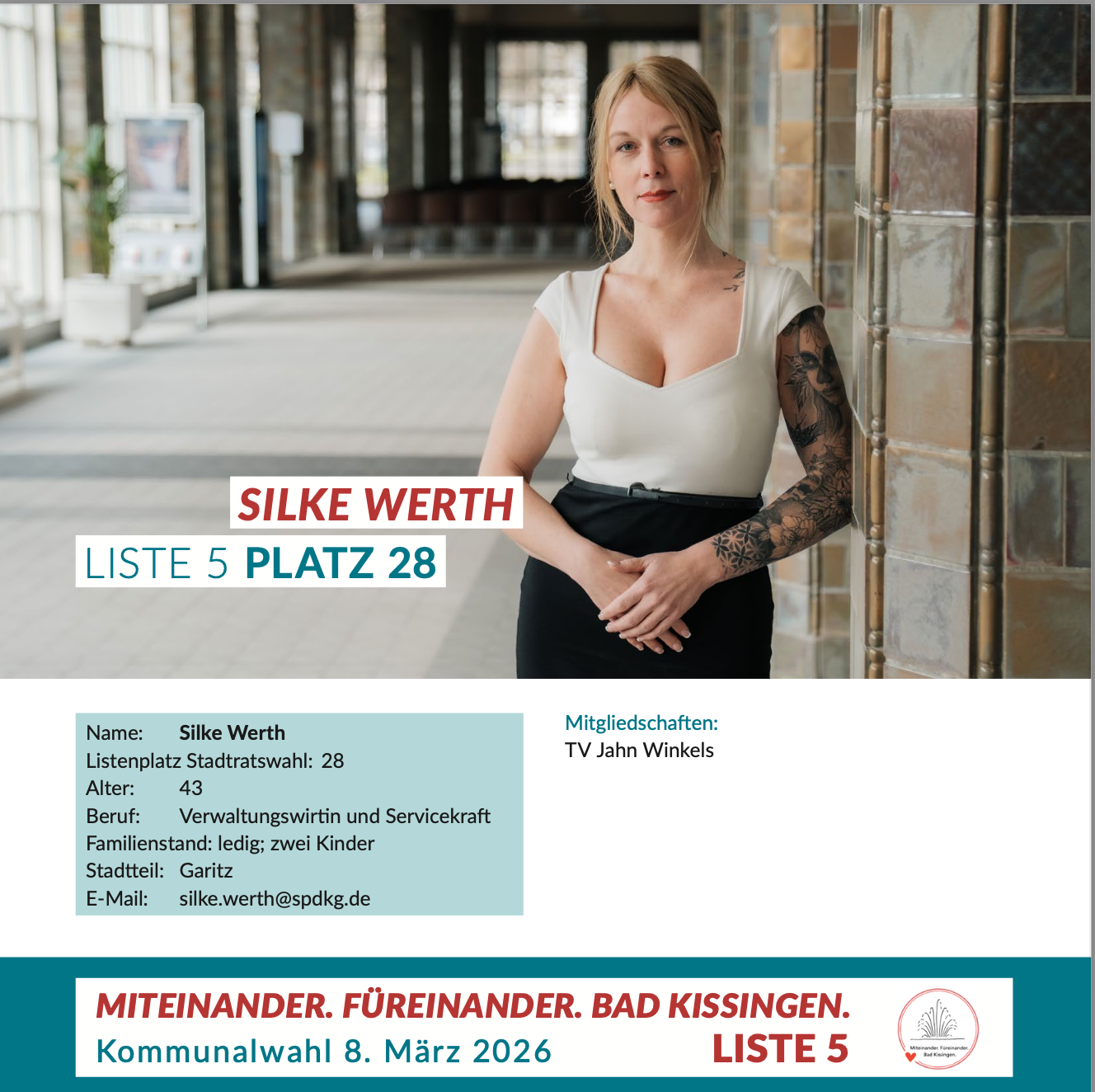 Sie sind hier: Start › Wahlen › Stadtratswahl › Miteinander. Füreinander. Bad Kissingen. › Silke Werth